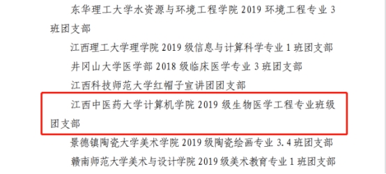 江中新闻网讯(通讯员 徐玺)4月27日,共青团江西省委作出表彰全省五四红旗团委(团支部)、全省优秀共青团员、全省优秀共青团干部的决定。其中我校2个集体和1名个人上榜,经济与管理学院团委获全省五四红旗团委称号;计算机学院2019级生物医学工程专业班级团支部获全省五四红旗团支部称号;人文学院2020级应用心理学专业学生苏艳鑫获全省优秀共青团员称号。